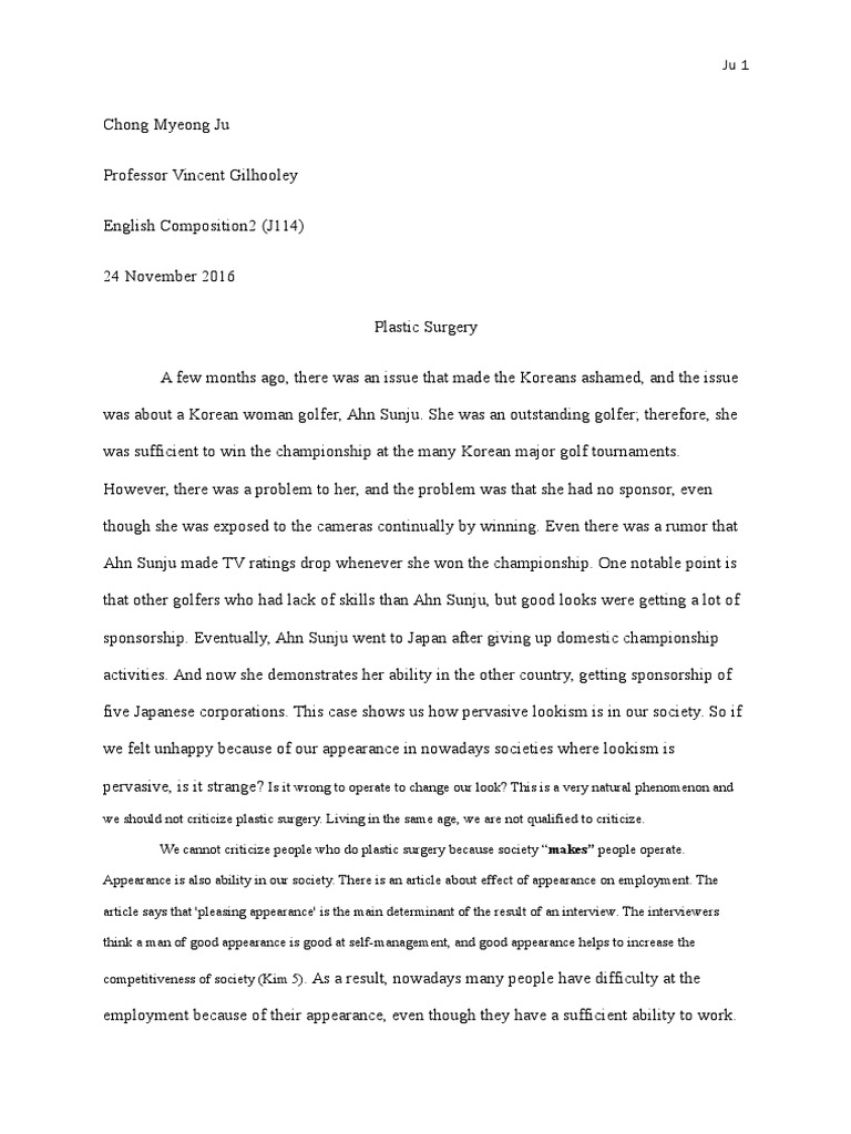 Plastic surgery argumentative essay